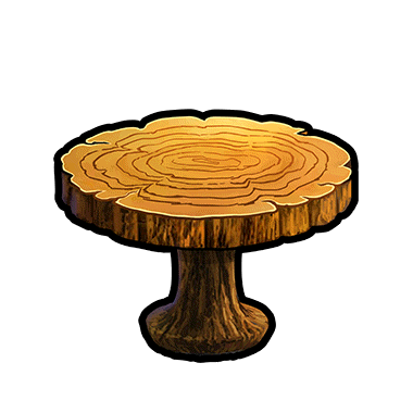 <豚の帽子>亭の店内で使われている机。椅子よりも大きな木を加工して造られていそうな大きさ。