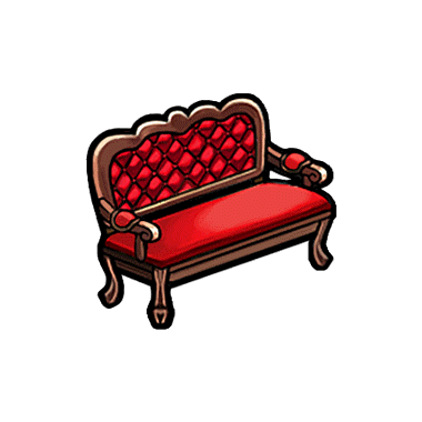 赤色の二人掛けの椅子。太陽のような赤色に、二人で座れば明るい気持ちになることができる。