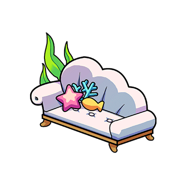 海の中を想起させるソファ。開いた貝殻をモチーフに作成されているとか。