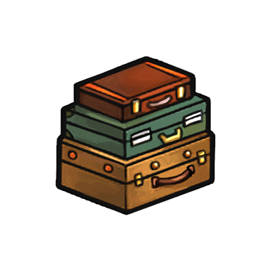 年季の入った西海風のトランク(こげ茶色)。使用者の数々の旅の思い出が詰まっている。
