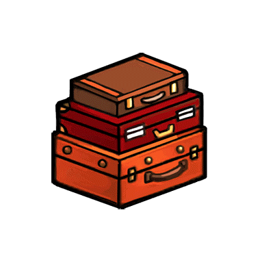 年季の入った西海風のトランク(オレンジ色)。太陽のような明るい色が旅を一層楽しいものにするだろう。