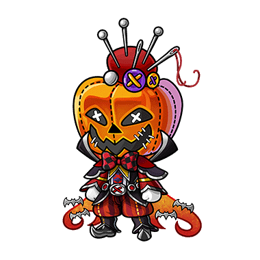 10月31日に日の目を浴びる王子様のぬいぐるみ。色は高級感のある赤モチーフ。眼差しはどこかいたずらっ子。頭の針に趣を感じる。