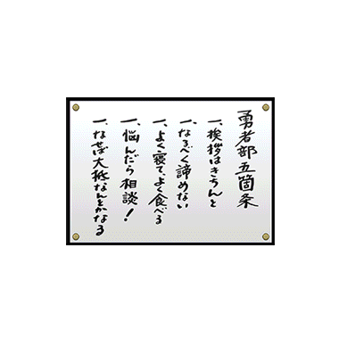 勇者部五箇条が記された額縁。 5つの項目があり、勇者部が活動する上での指針となっている。