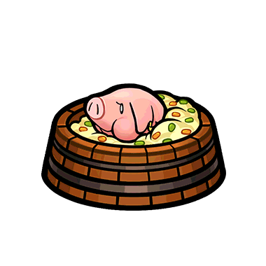 - 残飯の中に入っている「残飯処理騎士団」団長のホーク。体が小さくなってしまいっているときの状態をオブジェにしたもの。
