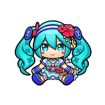 - SummerCarnival18衣装に身をつつんだ初音ミクのぬいぐるみ。ライブグッズのひとつとして作成され、その中でもトップクラスの人気を誇る。