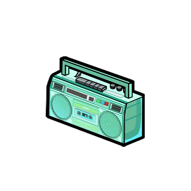 ロディとチヨの相棒のラジカセ。これがあればどこでもライブ会場に早変わり!