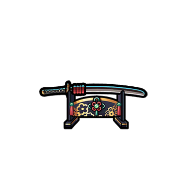 流麗な花飾りが目を引く、格式高き刀掛け。 静謐な空気が流れる空間に、研ぎ澄まされた刃の輝きと、装飾の美しさが際立つ。