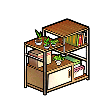 収納力に秀でたこげ茶色の棚。独特なデザインでお部屋におしゃれ感をプラス。