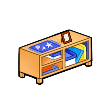 夏の思い出をまとめて収納するための棚。メインカラーをベージュ色にして爽やかさを演出。