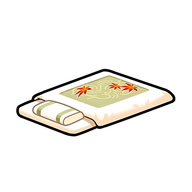 抹茶色が奥ゆかしいもみじ柄の座敷布団。使わないときは畳んで片付けることができるのが利点。