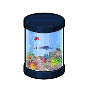 円柱タイプのアクアリウム。360度どこからでもお魚の赤裸々な姿を確認できちゃう。
