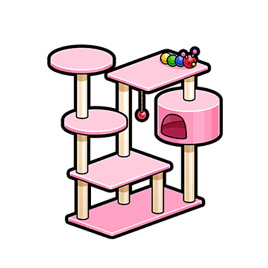 ペットが室内で遊ぶために作られた特注タワー。 遊びたい盛りのペットも、引きこもりがちなペットもこれさえあればいつでも遊べる。