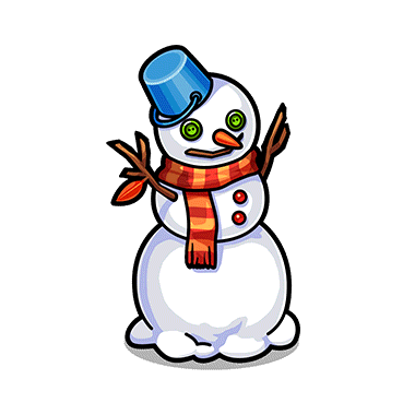 三頭身の雪だるま。 バケツの帽子としましまマフラーがチャーミング。 冬の間、夜な夜な動いているという噂……。