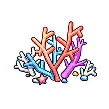 色とりどりのさんごをモチーフにした飾り。見ているとどことなく涼しさが感じられる。