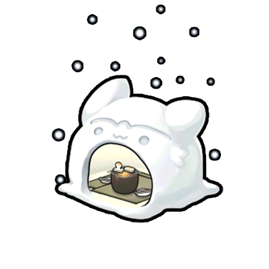 リミミンの形をしたかまくら。 中は意外にも温かく、思わず居眠りしてしまう冒険者たちが続出しているそう。