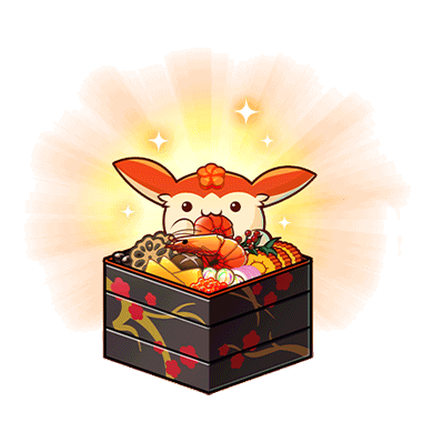 誰が頼んだのか、そこに置いてあったお重。 「あけましておめでとうミン!」とリミミンがご挨拶。海老が無くなっているのに気がつくのは、もう少し後になりそうだ。