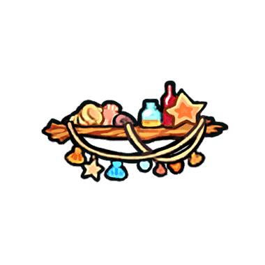 南国をイメージした茶色の吊り棚。海で拾ってきた貝殻を使って作られた。