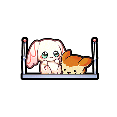 めるるんとリミミンのぬいぐるみが飾ってある棚。 ただのぬいぐるみのはずなのに2体の間に緊張感があるように感じる…。