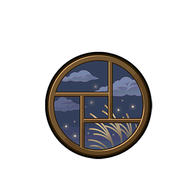 この丸い窓の向こうには、夜空に浮かぶ雲と月明かりに照らされた草が広がる。 静寂に包まれたその光景は心を落ち着かせ、穏やかなひとときを与えてくれる。