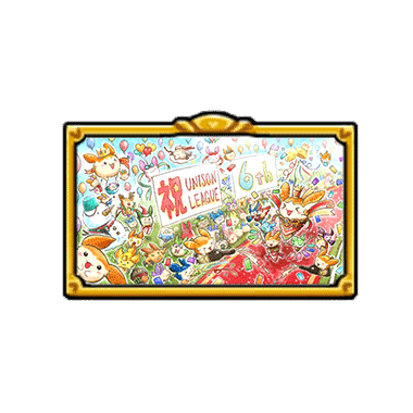 ユニゾンリーグ6周年ファンアートコンテストで「ごえもん」さんが描いてくれたファンアート。 描いてくれた「ごえもん」さんだけに特別に贈呈! たくさんのリミミンがお祝いに駆けつけてくれて、とっても嬉しい!