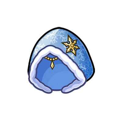 - とある国の王子のために作られた、朧六花の文様を織り込んだフード。雪の花の文様が寒さから守ってくれる。