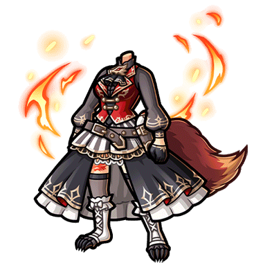 - フェルムローゼが力を解放した時の姿をイメージした女性用の服。 ほとばしる炎と獣の尻尾は、苛烈にそして華やかに戦う彼女のトレードマークである。