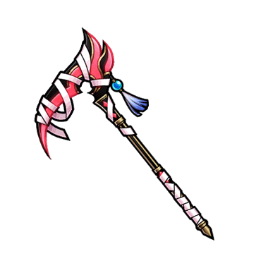 - 朱と黒の刃が重なり合う、不気味な印象の鎌。 刃に巻き付く白い布は鬼を封じるほどの力が込められている。 布は戦う上で枷にならず、そこから溢れる呪力は敵の命を蝕む。