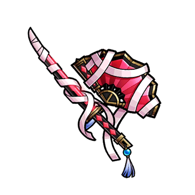 - 朱と黒の色が重なり合う、不気味な印象の剣と扇子。 剣と扇子に巻き付く白い布は鬼を封じるほどの力が込められている。 布は戦う上で枷にならず、そこから溢れる呪力は敵の命を蝕む。