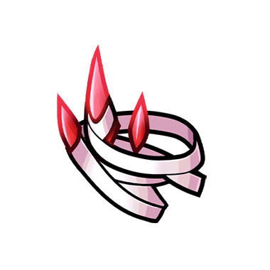 - 鬼を封じるほどの力が込められている白い布。 片目と角を覆い隠すはその力を封じるためか。 布から突き抜ける朱色の角は力を誇示するがごとく光っている。