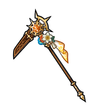 - 太陽の加護を受けた鎌。 南国の花々や太陽の装飾があなたの戦果を彩っている。