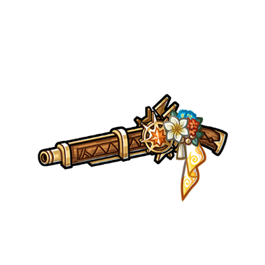 - 太陽の加護を受けた銃。 南国の花々や太陽の装飾があなたの戦果を彩っている。