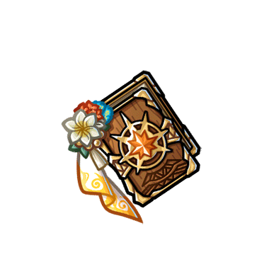 - 太陽の加護を受けた書物。 南国の花々や太陽の装飾があなたの戦果を彩っている。