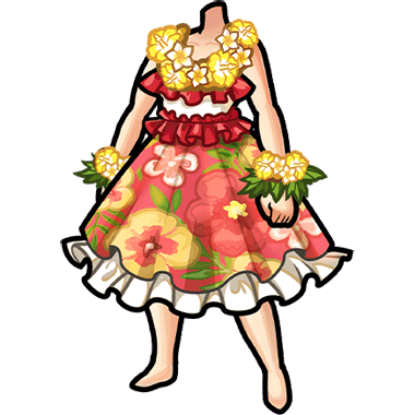 - 常夏のリゾートでよく着られているドレス。 首回りを彩るレイからはリラックスできる香りが漂う。